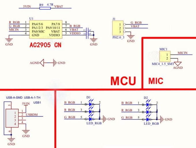 語音識別芯片-AC2905中文版方案原理圖(供參考):