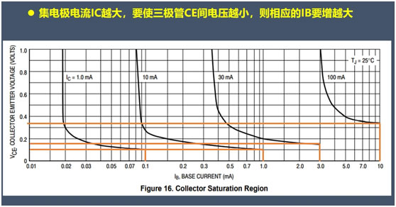 這個圖說明如果B極電流越大,CE電壓差就越小,相應(yīng)的燈的電壓越小。