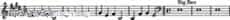 這首曲子的旋律包括五個片段,每個片段都僅由E大調的B3、E4、F?4和G?4四個音高組成。每個片段的前三個音演奏四分音符的時長,最后一個音演奏附點二分音符的時長。