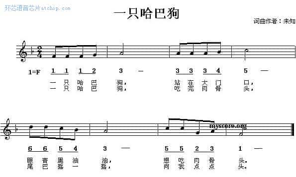 | 一只哈巴狗音樂(lè)曲譜簡(jiǎn)譜 : |