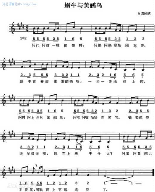 蝸牛與黃鸝鳥(niǎo)歌曲歌詞曲譜 ( 聲音類(lèi) ) / The Snail and the Oriole Birds |