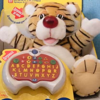 小孩子抱著毛絨玩具公仔,大人可以通出紅外遙控器使公仔播放出不同的聲音,時而聽音樂,時而念唐詩!同時又能不時的播放英語單詞.還有加法減法口決呢.并且毛絨公仔是說話時是會動的呢